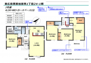 - システムキッチン、洗浄便座、複層ガラス、ルーフバルコニー、ウォークインクローゼット、モニタ付インターホン、駐車場2台分、床下収納、トイレ2箇所、ガスその他,電気,上水道,下水道,給湯,フローリング,収納スペース,ディンプルキー,火災警報器等設置済,長期優良住宅認定通知書