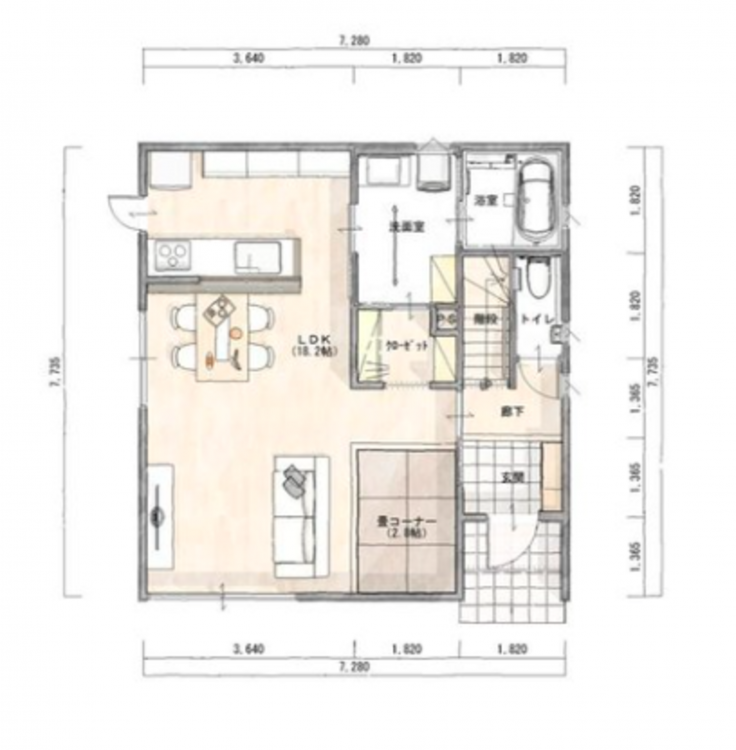 - オール電化、ウォークインクローゼット、モニタ付インターホン、駐車場2台分、駐車場:カーポート/長期優良住宅認定通知書 / フラット35・S適合証明書 / LDK20畳以上 / 市街地が近い / 整形地/ 南庭 / 都市近郊 / 小学校 徒歩10分以内 / 平坦地 / 開発分譲地内 / 納戸 /スマートキー